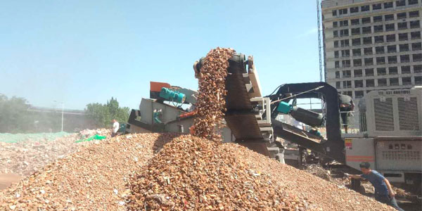 破碎在建筑垃圾处理过程中是重要的辅助作业之一,主要目的是把大的物料颗粒变小、变均匀来提高分选的效率和质量。建筑垃圾的破碎方法有机械破碎和物理破碎两种,机械破碎是借助于各种机械对固体废物进行破碎。主要有颚破、反击破等。利用破碎机产生作用于建筑垃圾物料上强烈外力迫使垃圾物料破碎,破裂而变成体积更小的物料。