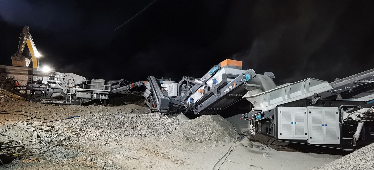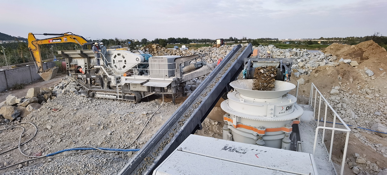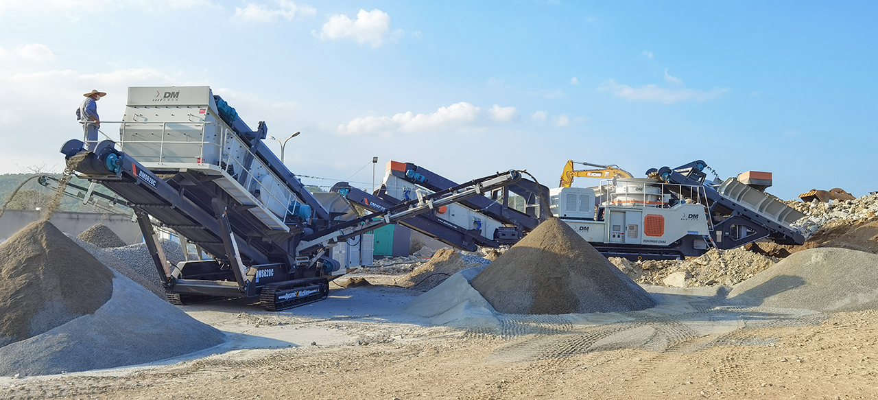 设备型号:DMJ移动颚式破碎站+DMHP移动圆锥式破碎站+DMS移动筛分站