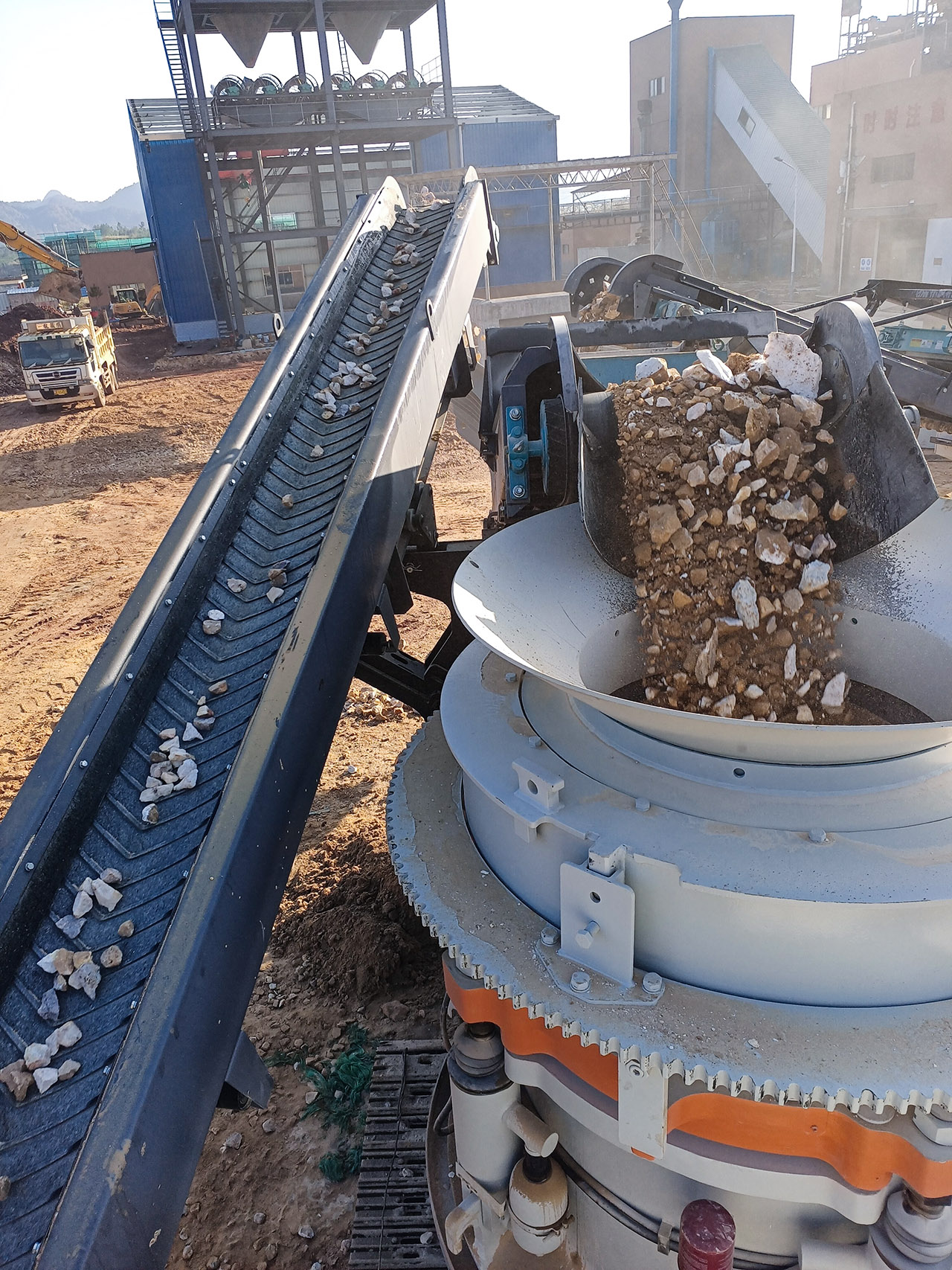 【东蒙案例】颚、锥、筛移动站石英岩破碎生产线火热投产!